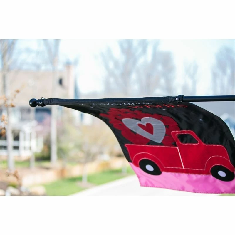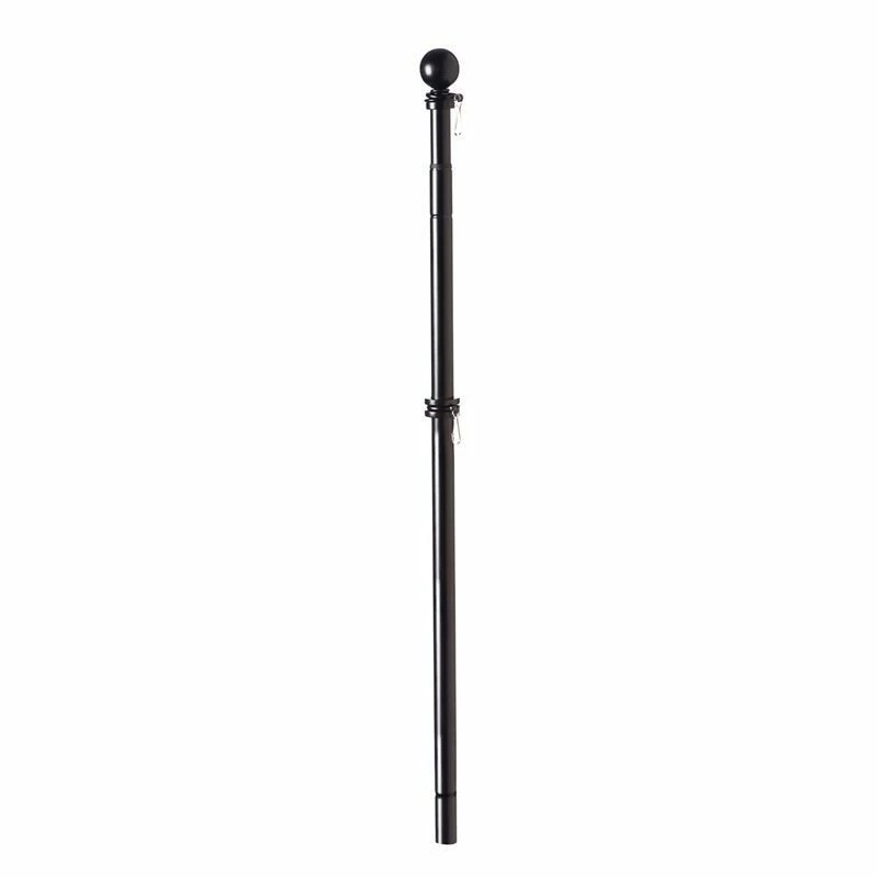 This black metal telescoping house flagpole features a standard ball finial and extends from 35″ to 60″, which makes it perfect for different size flags such as 2′ x 3′, 2 1/2′ x 4′ or 3’x5′. This well-made pole measures 1.8″ in diameter and is easily adjustable depending on the size flag you are flying, wind conditions, etc.
