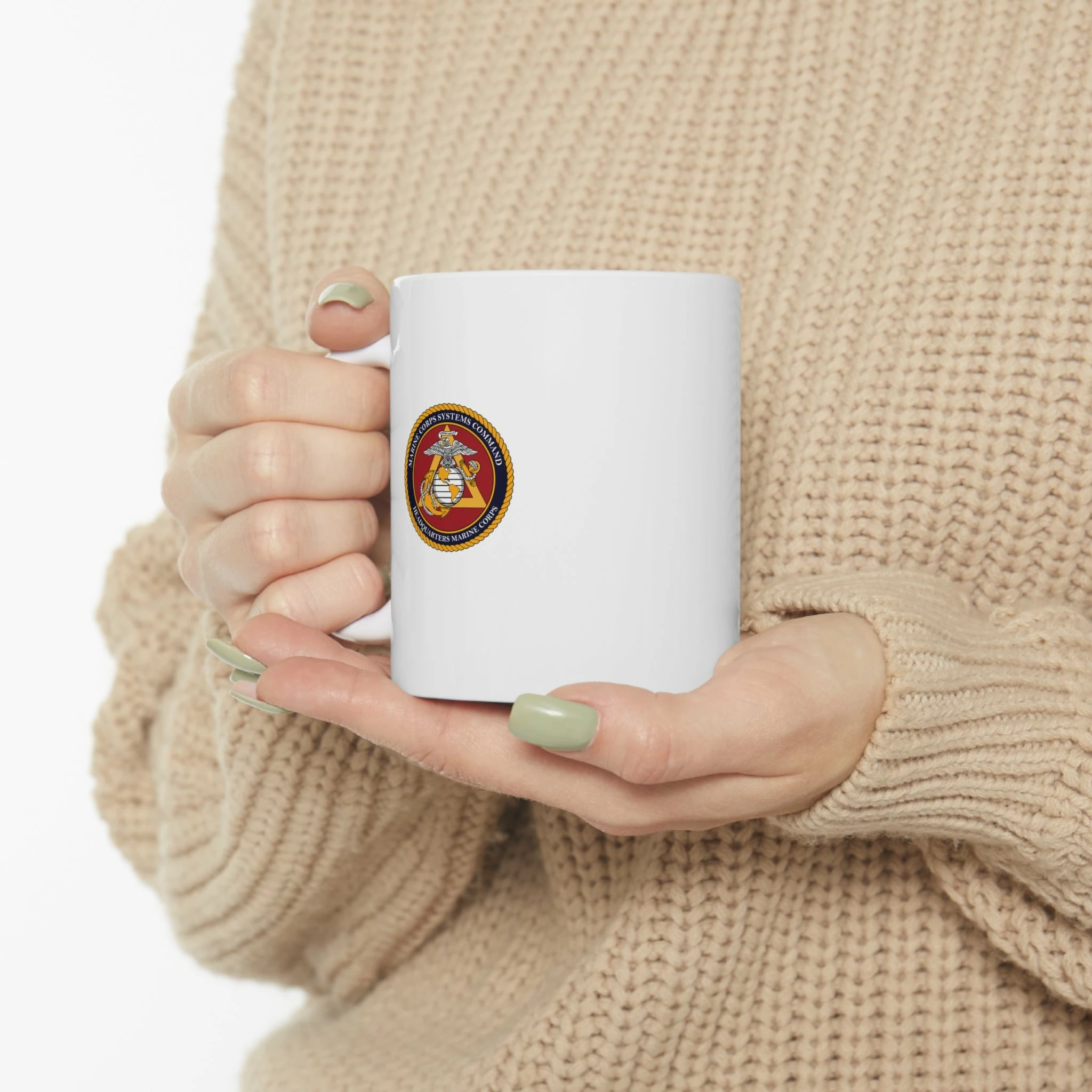 Presenting the distinguished 11 oz Marine Corps Systems Command Mug, exclusively tailored for the esteemed Headquarters Marine Corps.