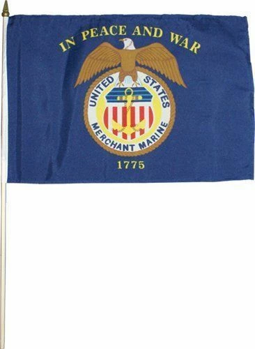 These 12″ X 18″ handheld Merchant Marine flags are mounted on a 30″ natural wood staff and perfect for indoor or outdoor use at parades, ceremonies or events. The flags feature vivid colors, fine stitching and careful construction designed to honor the Merchant Marines. Be sure to check out our volume discounts.