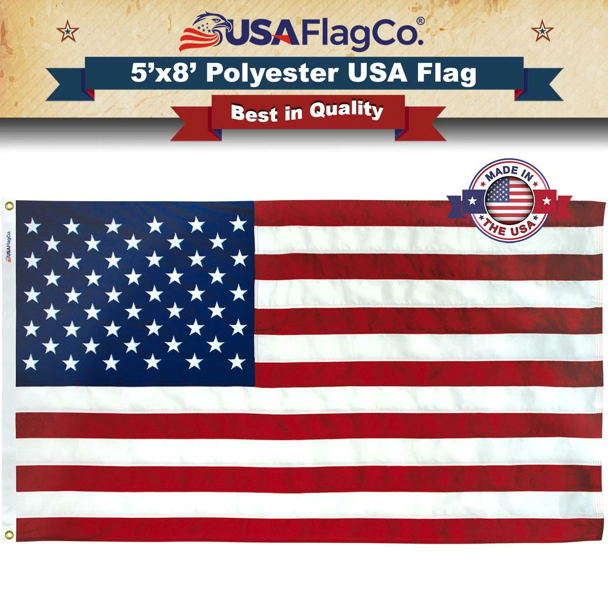 Add this 5×8 Polyester USA Flag to your cart for Immediate Delivery Now.