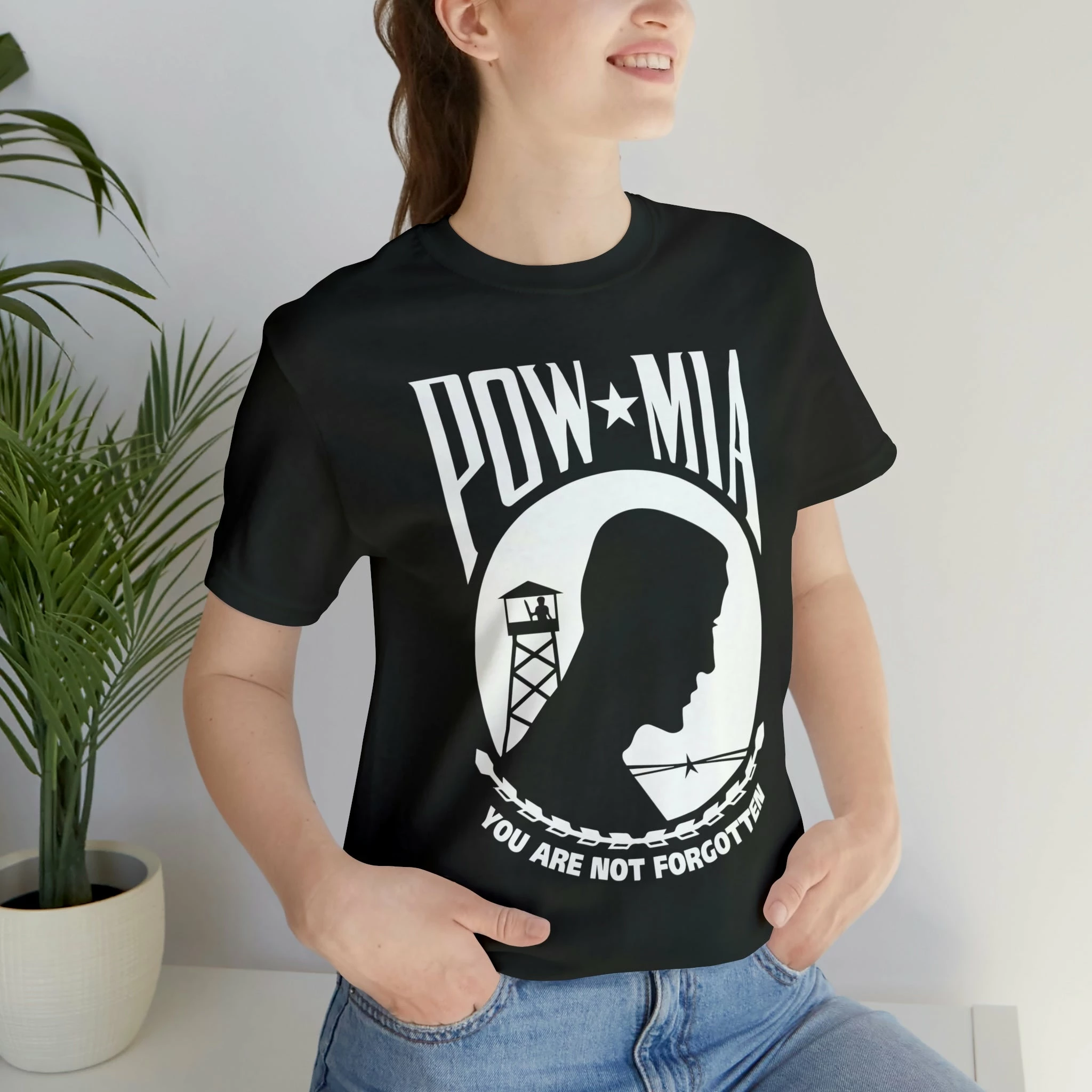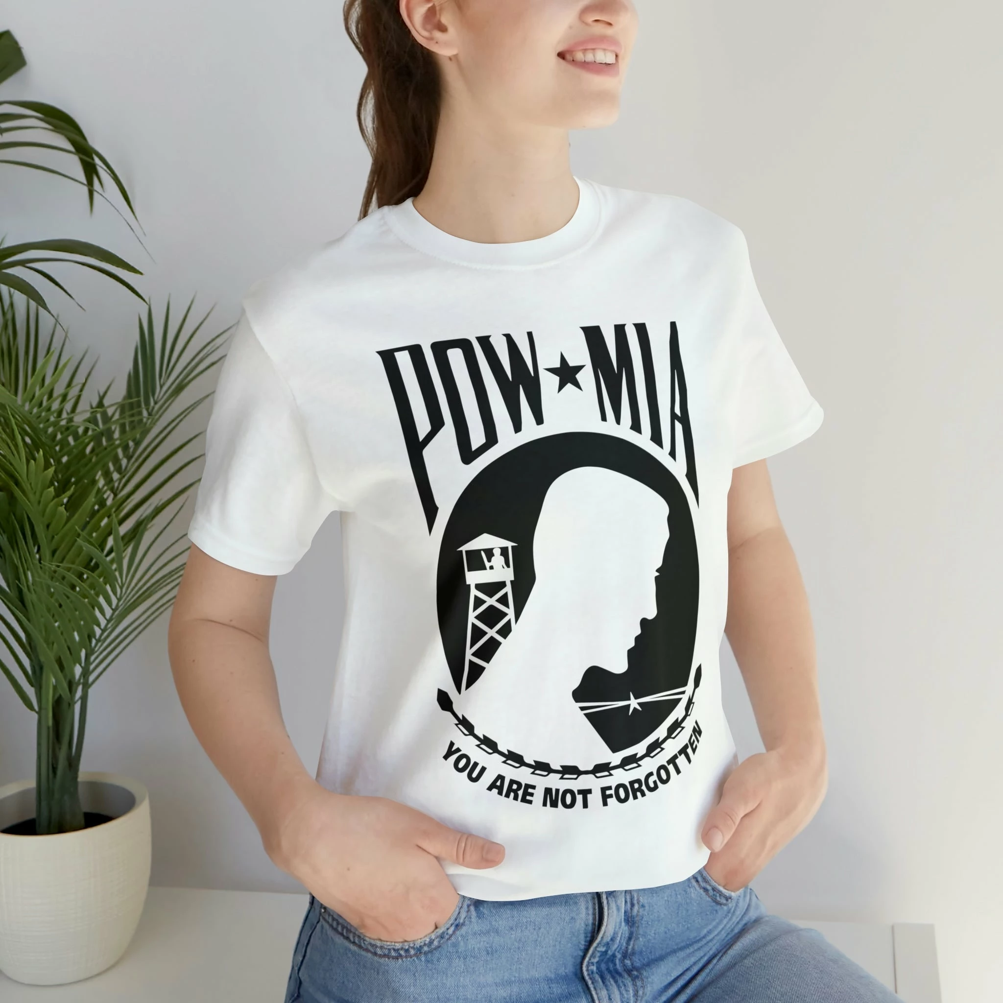 Introducing our POW-MIA t-shirts, designed for both men and women! Our unisex tees are the perfect gift for anyone who wants to show their support for our missing and fallen soldiers.