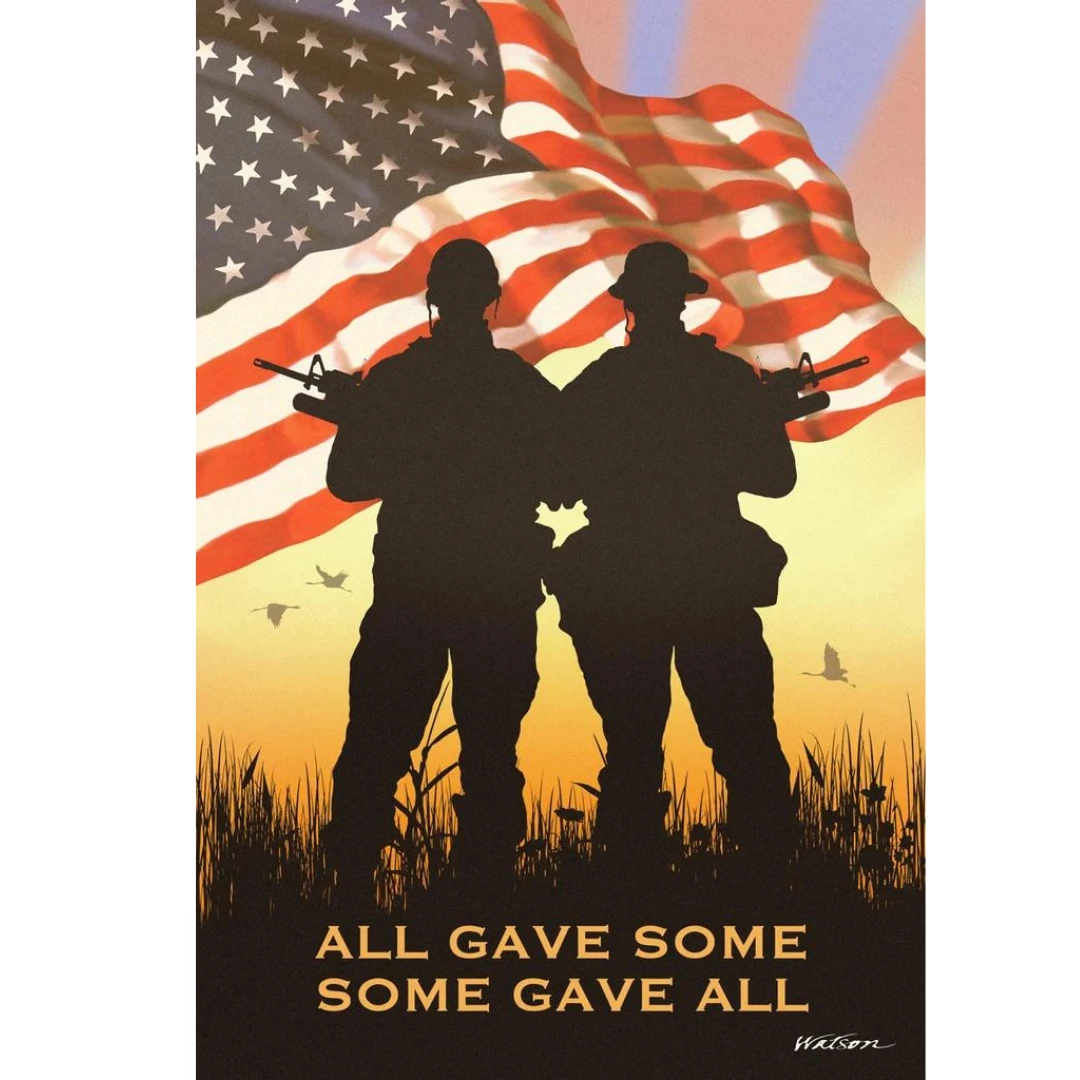 “All Gave Some, Some Gave All” is the powerful message this beautiful 28″x 40″ Vertical Banner shows. Printed right here in the USA on 100% polyester in vibrant colors, this banner will show your support of our Heroes and Veterans.