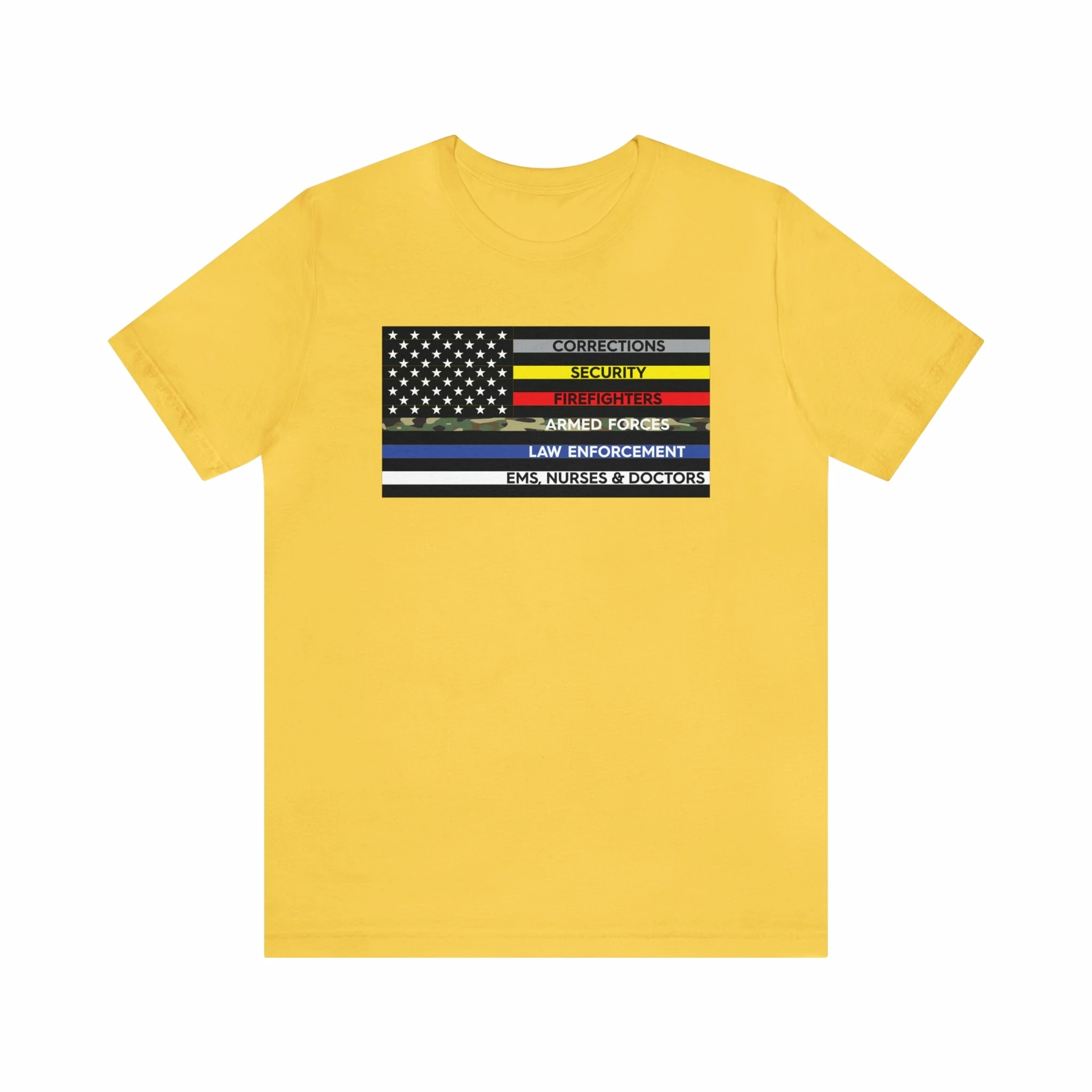 Introducing our Thin Line USA Flag T-Shirt, the perfect way to show off your patriotic pride and support for our First Responders. These unisex shirts are designed to fit both men and women comfortably, making them the perfect gift for anyone who loves America and all that it stands for.