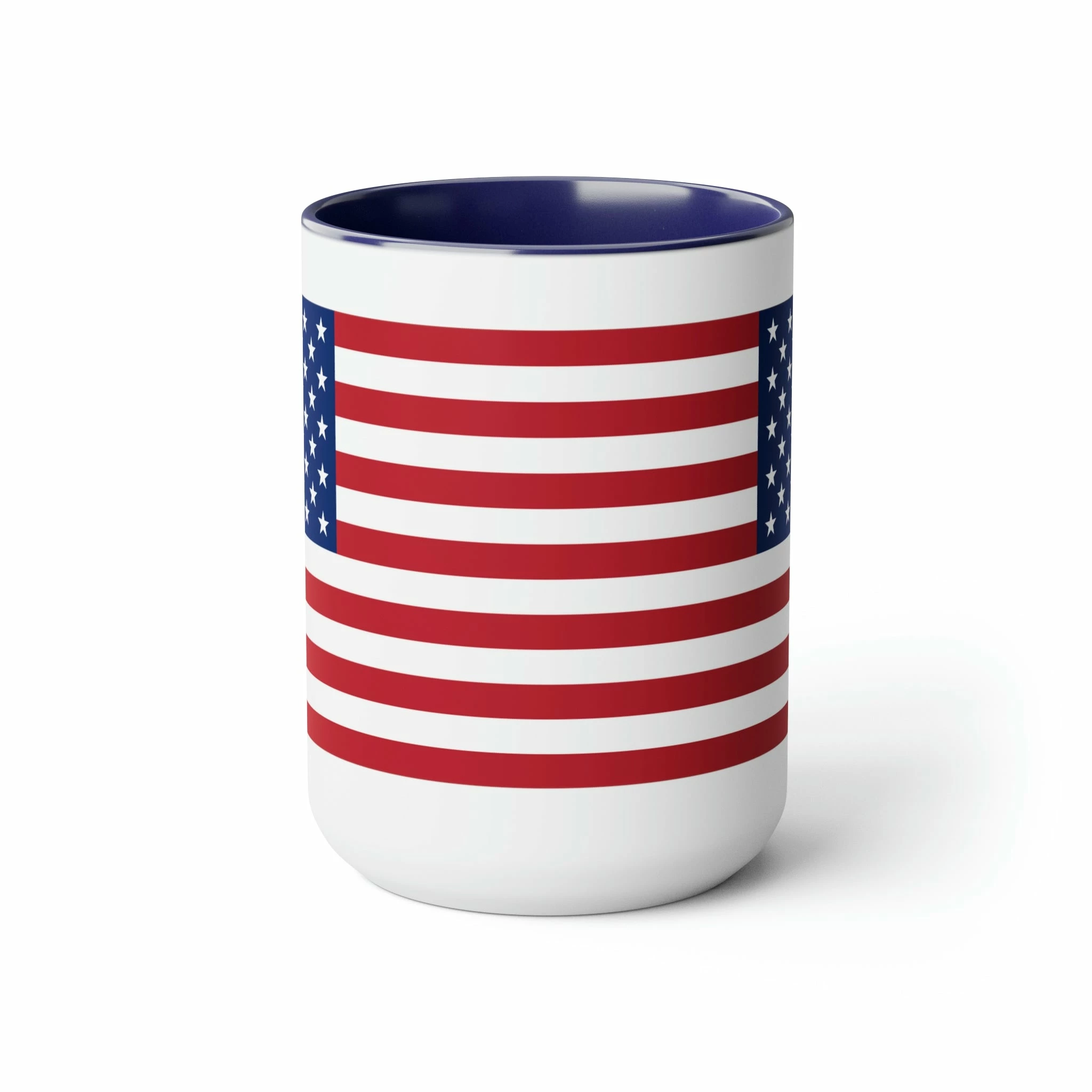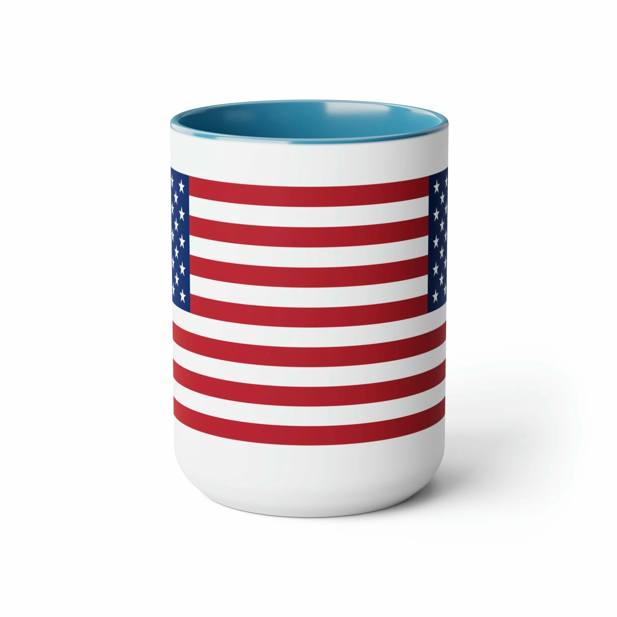 Here to bring big gulps of coffee and style, these two-tone American flag coffee mugs help people around the world start the day just right. Choose between 5 different color options to best complement your designs. Each American flag mug comes with a colored handle, a colored interior, and a classy, glossy finish so that your mugs become an instant favorite.
