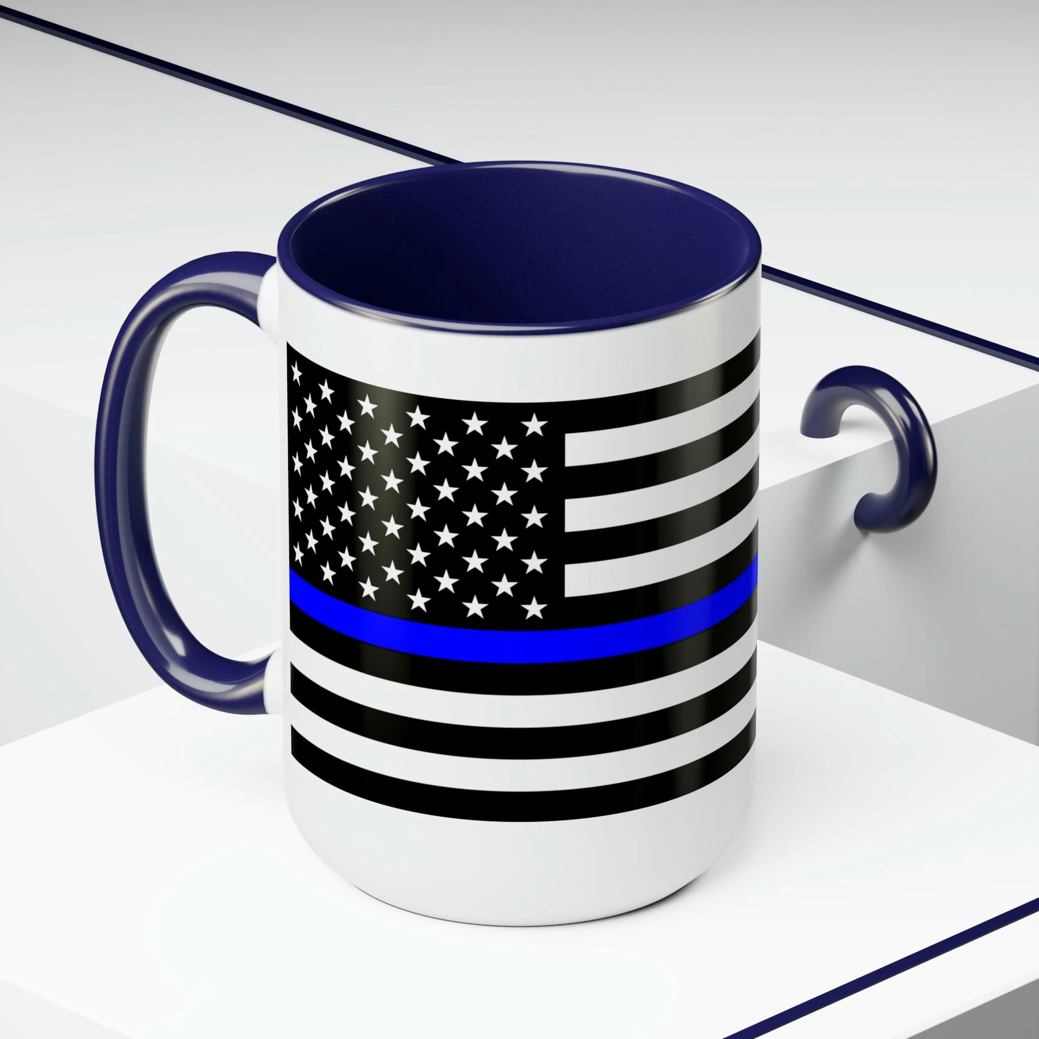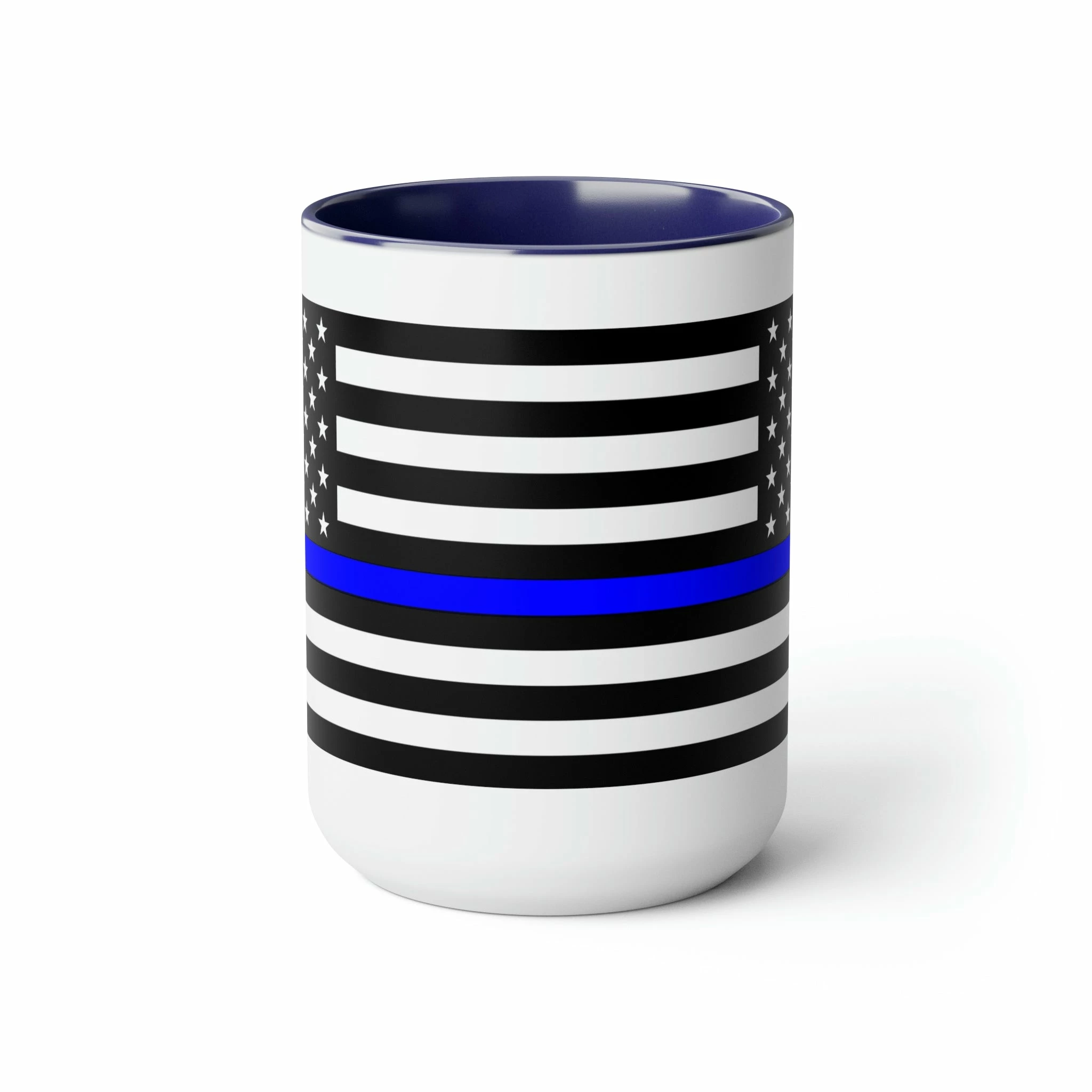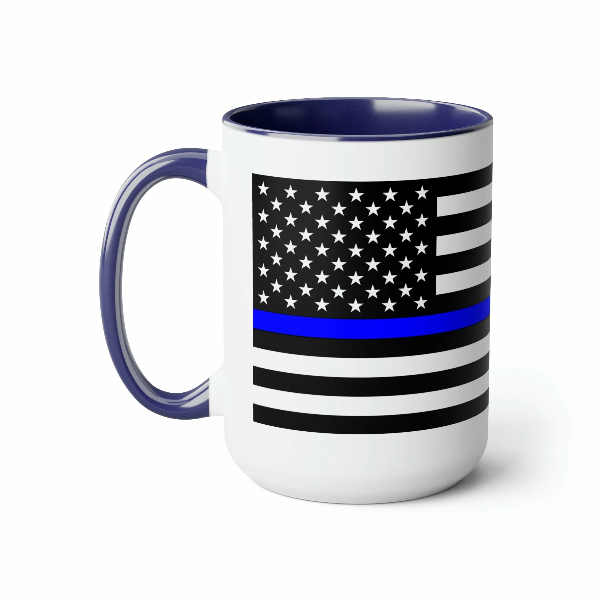Here to bring big gulps of coffee and style, these two-tone Thin Blue Line Flag coffee mugs help people around the world start the day just right. Choose between 5 different color options to best complement your designs. EachĀ Thin Blue Line Flag mug comes with a colored handle, a colored interior, and a classy, glossy finish so that your mugs become an instant favorite.