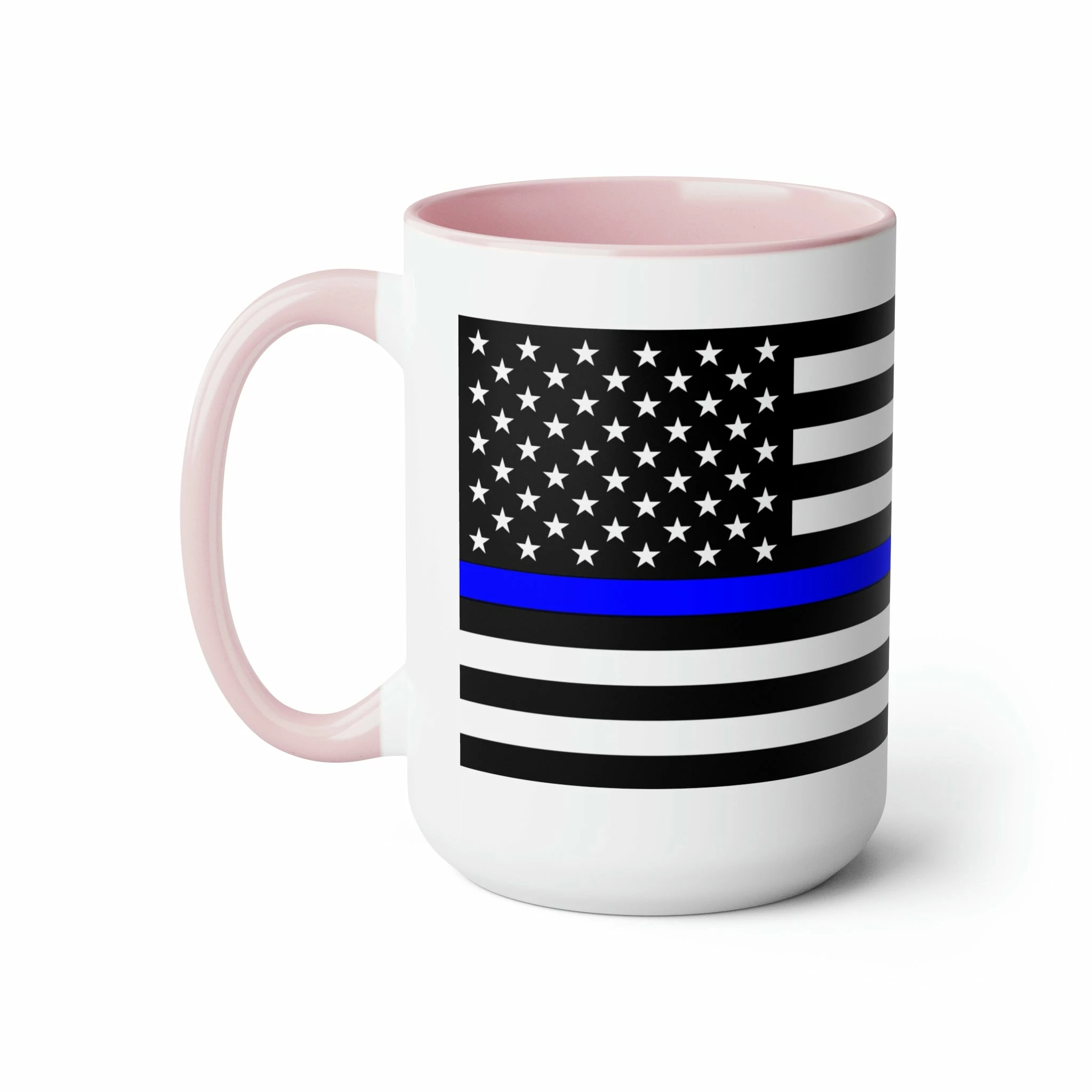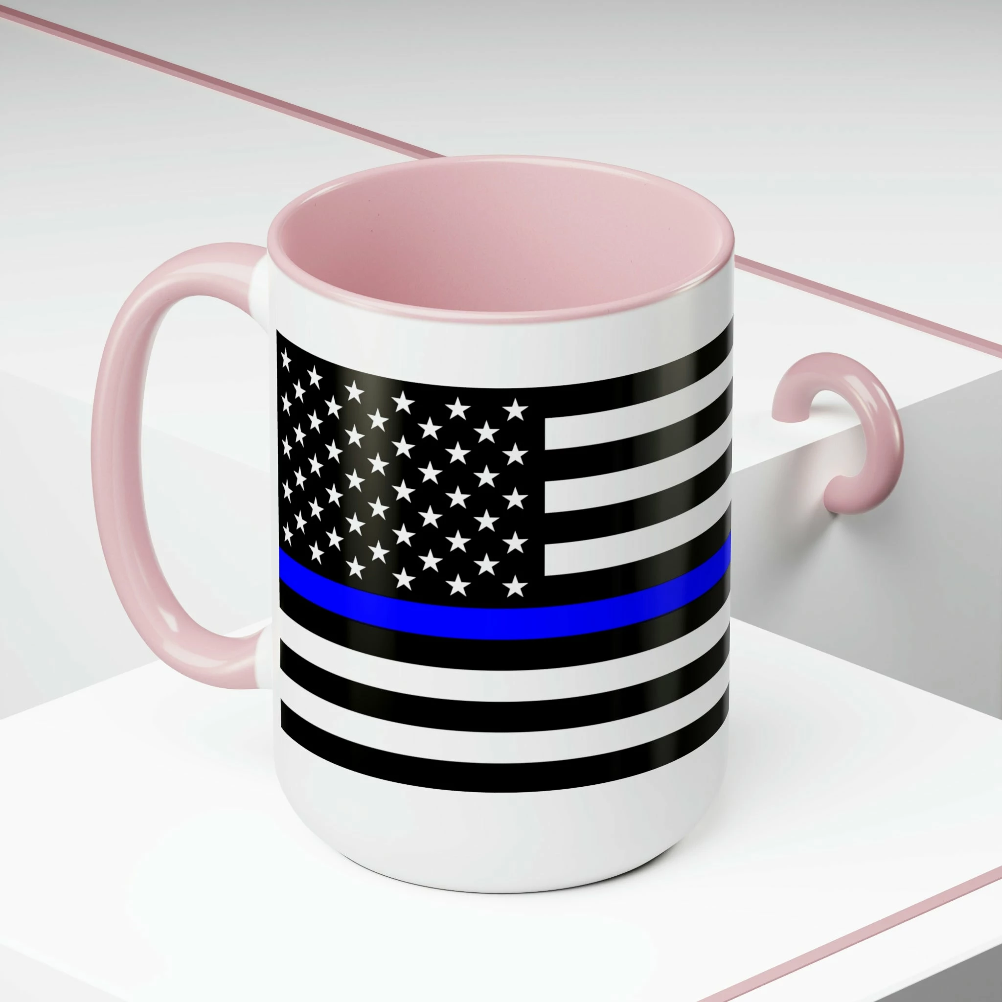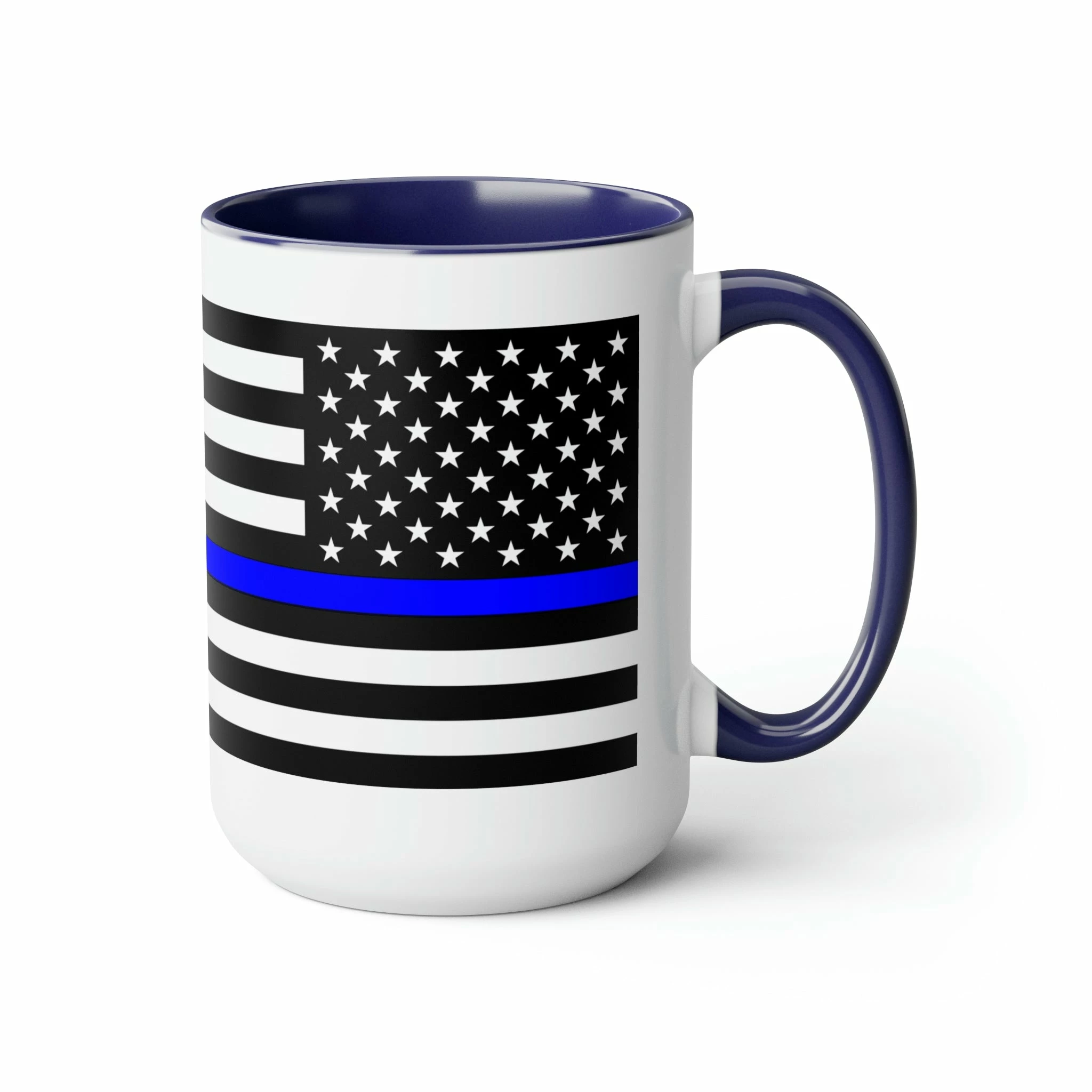 Here to bring big gulps of coffee and style, these two-tone Thin Blue Line Flag coffee mugs help people around the world start the day just right. Choose between 5 different color options to best complement your designs. EachĀ Thin Blue Line Flag mug comes with a colored handle, a colored interior, and a classy, glossy finish so that your mugs become an instant favorite.