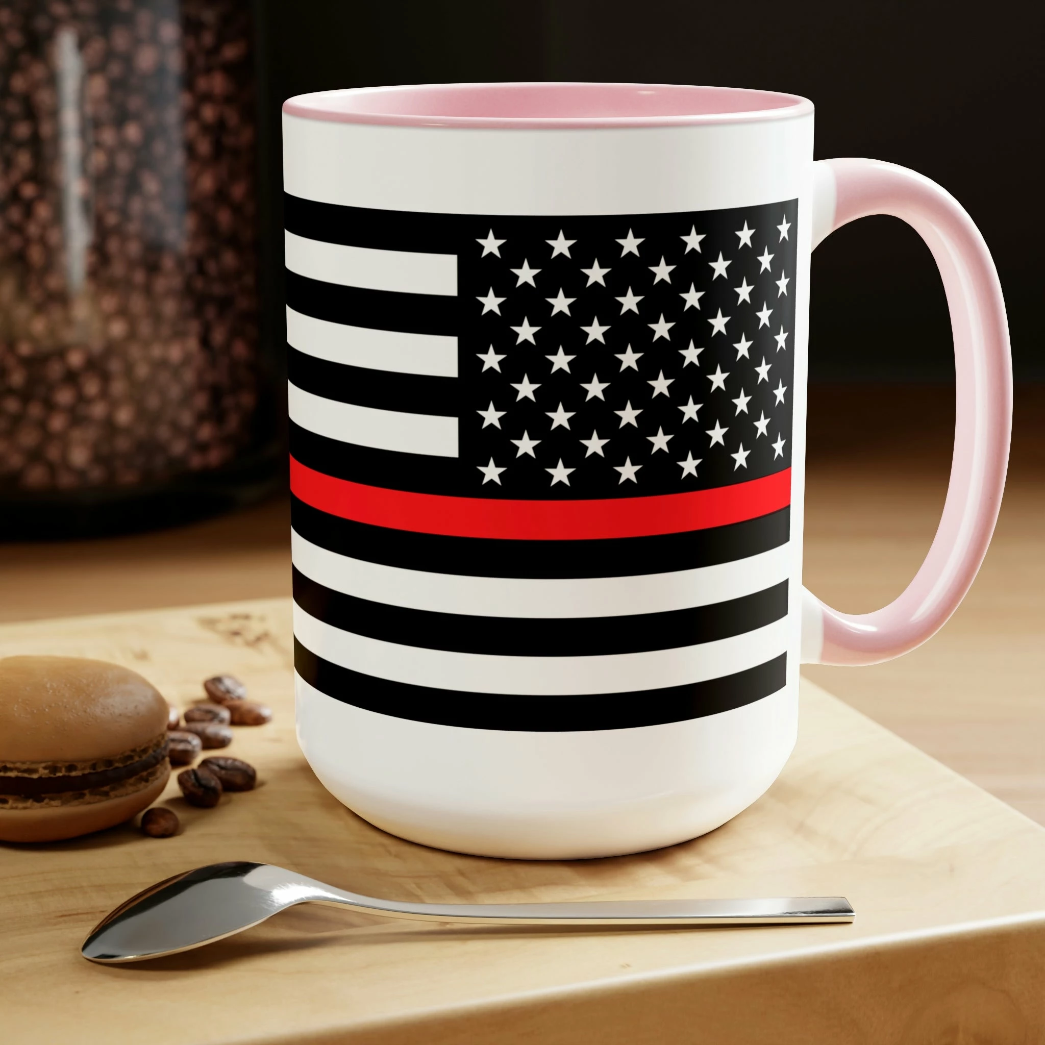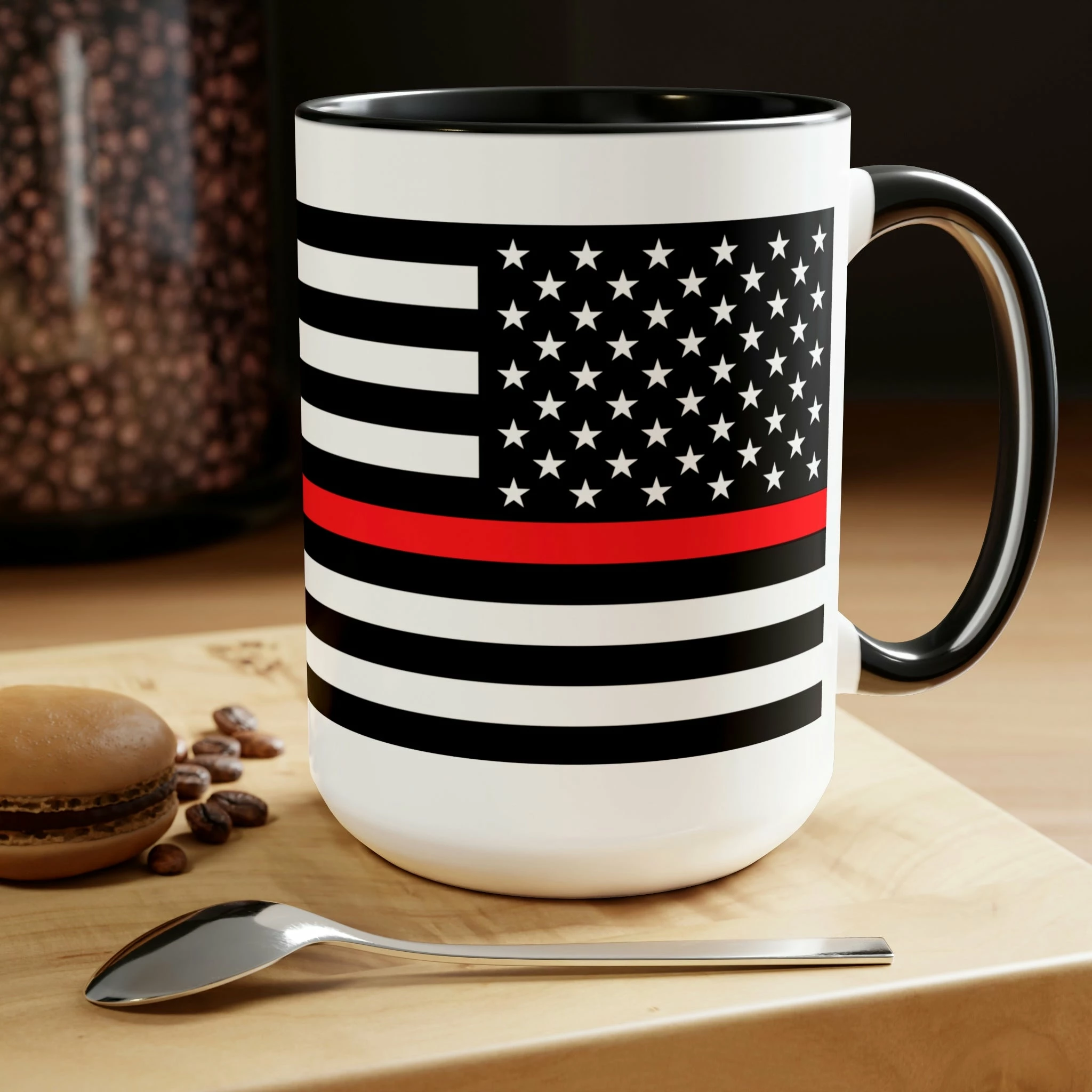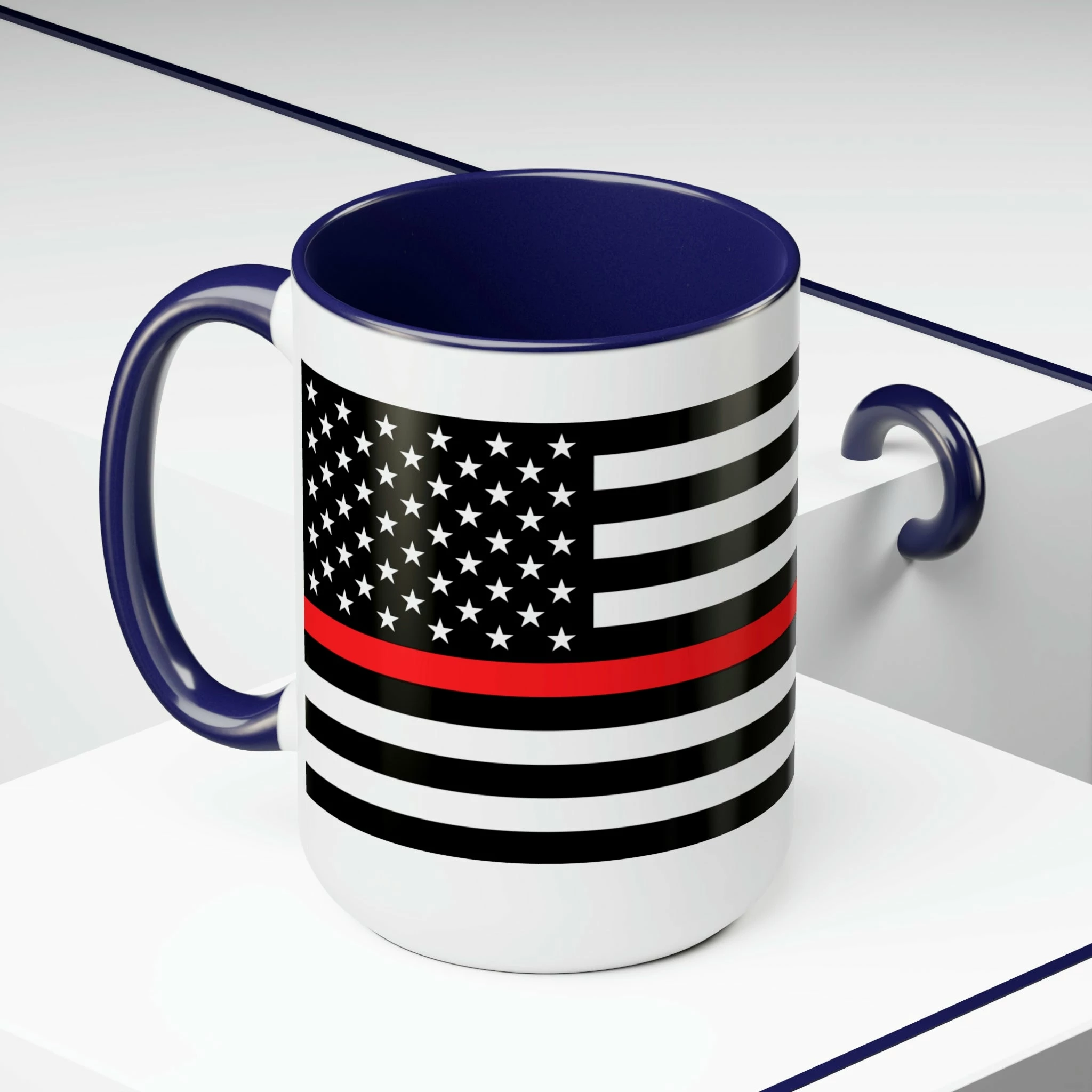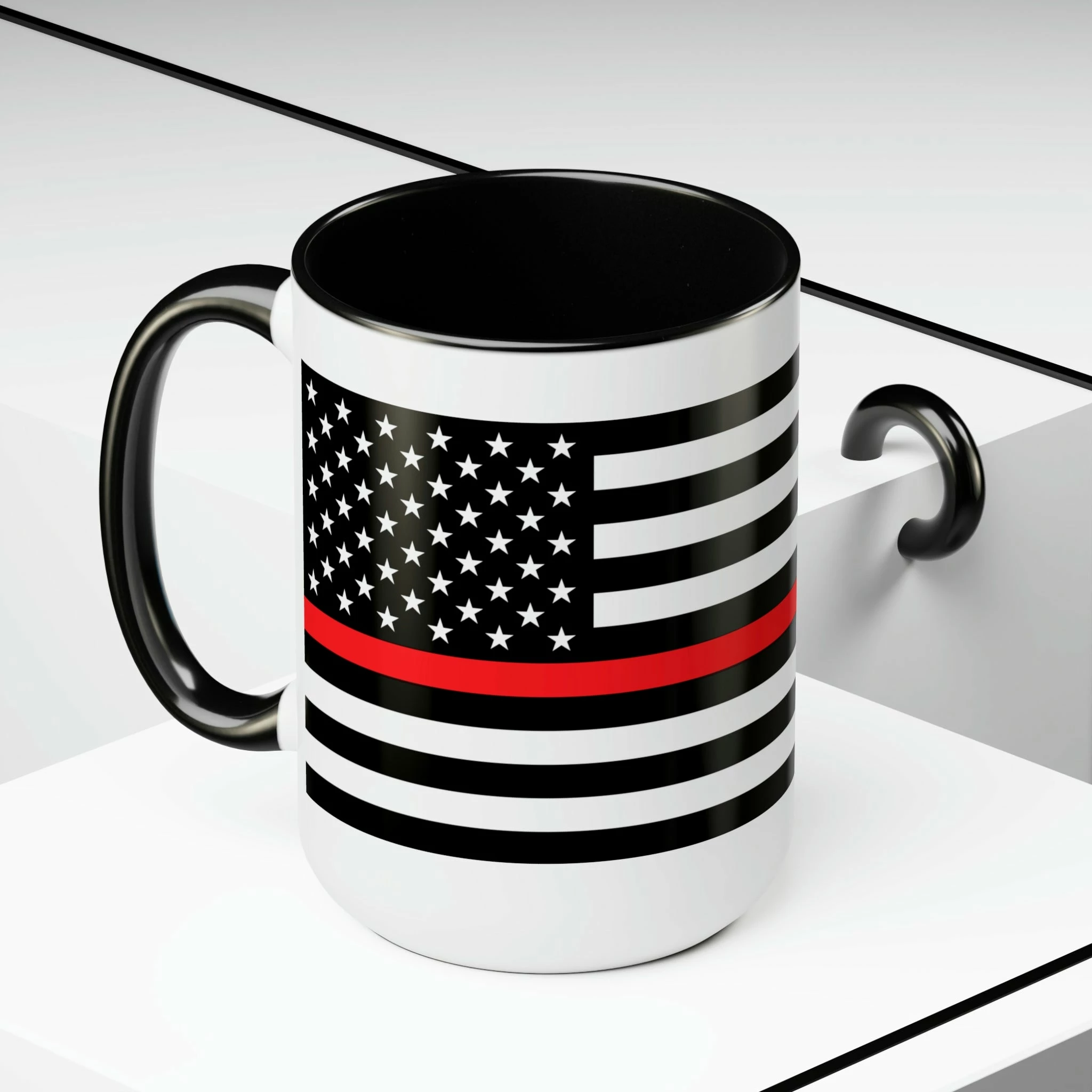 Here to bring big gulps of coffee and style, these two-tone Thin Red Line Flag coffee mugs help people around the world start the day just right. Choose between 5 different color options to best complement your designs. EachĀ Thin Red Line Flag mug comes with a colored handle, a colored interior, and a classy, glossy finish so that your mugs become an instant favorite.